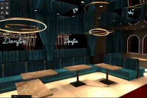 新宿歌舞伎町の有名店ドンフィンの姉妹店として2023年11月下旬にオープンしたのが北千住ドンフィンです。スタイリッシュでコンテンポラリーなデザインが特徴です。深みのあるブルーとベージュの座席が落ち着いた雰囲気を演出し、ゴールドのアクセントと洗練された照明が高級感を加えています。店内には円形のモダンな照明器具や洗練された装飾が施され、空間全体に一貫性と流れを生み出しています。鮮やかなネオンサインや大型ディスプレイが現代的な触感を与え、訪れる客に洗練された夜のエンターテイメント体験を提供しています。