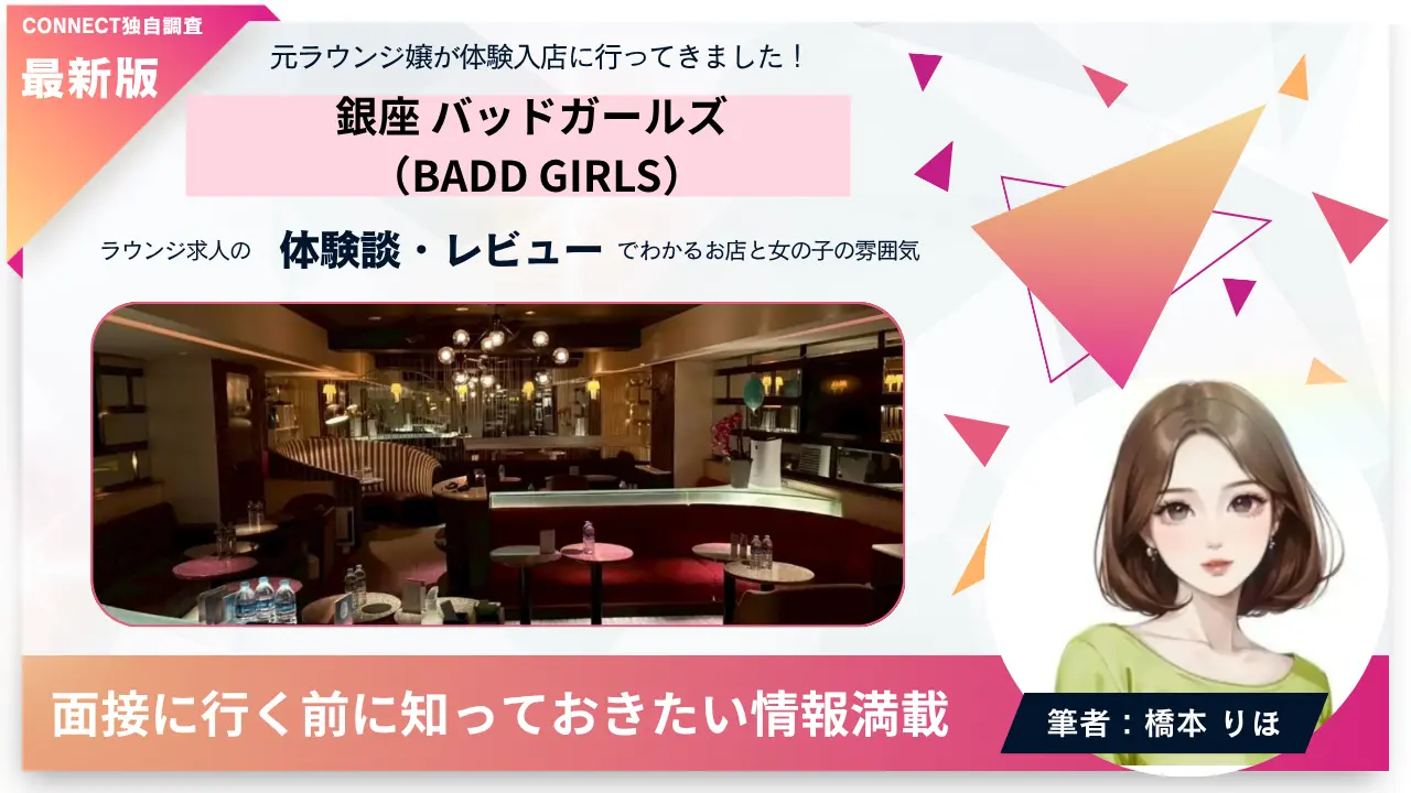 銀座会員制ラウンジ「バッドガールズ/Campus Cafe BADD GIRLS 銀座店」に面接と体験入店に行った際に率直に思ったことは「会員制ラウンジの中でもより自由に勤務できる!」と「働くキャストが同年代だから気が楽!」です。お店のスタッフさんから聞いた話を元に、色々な角度から感じた事を投稿しますので参考になると嬉しいです!